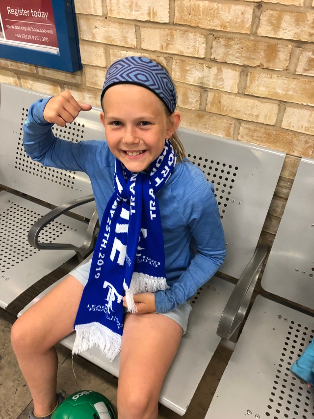 We made our way to the train station and found quite a rambuncous crowd. We took a chance and asked a small group what they were celebrating. Turns out there was an important football game and their team (Tratmere) won! As Juliette was carrying “Sonny D” (her football) one of the men in the group asked if she played. She energetically said yes and he immediately gave her his football scarf! So cool!