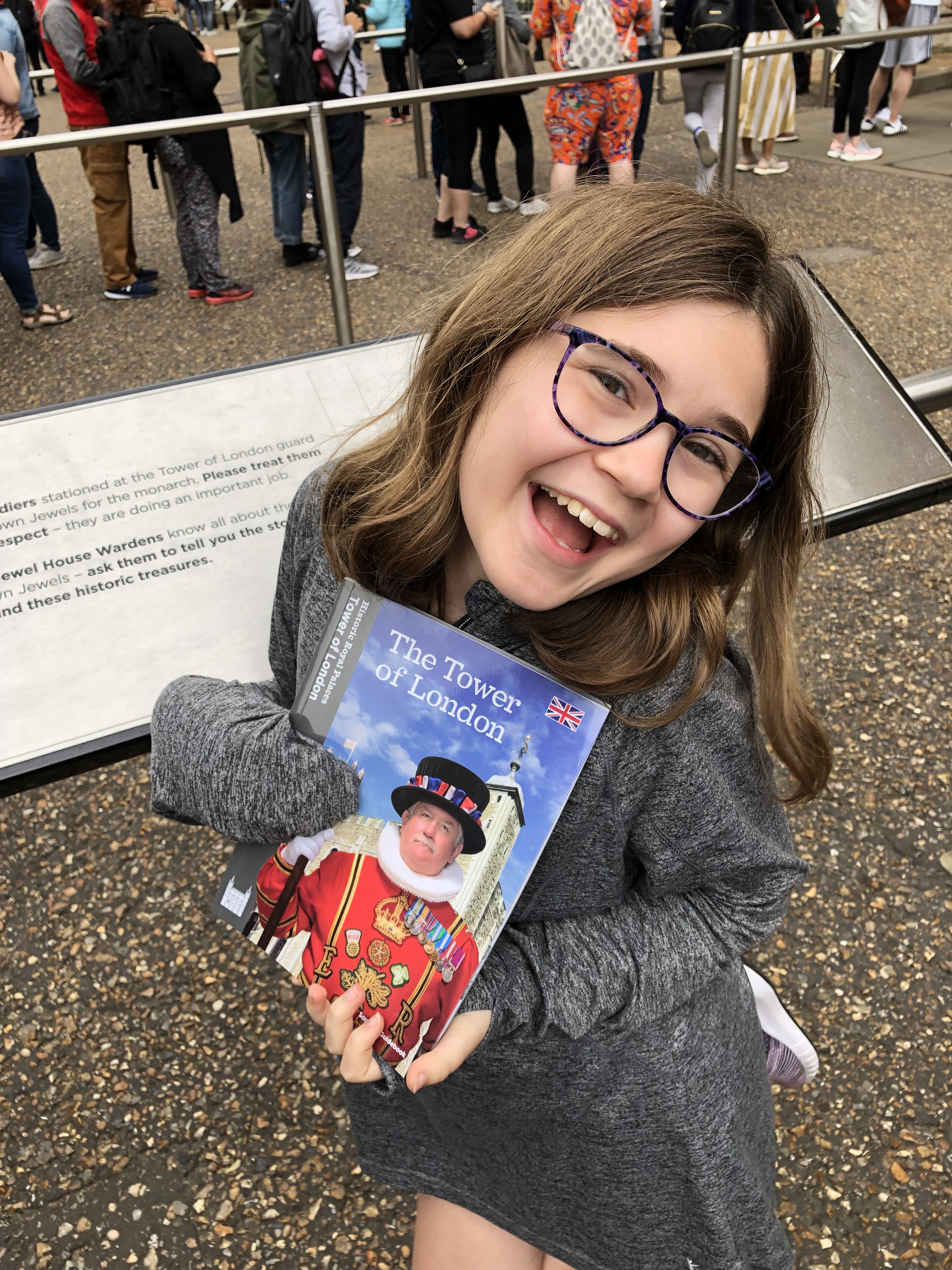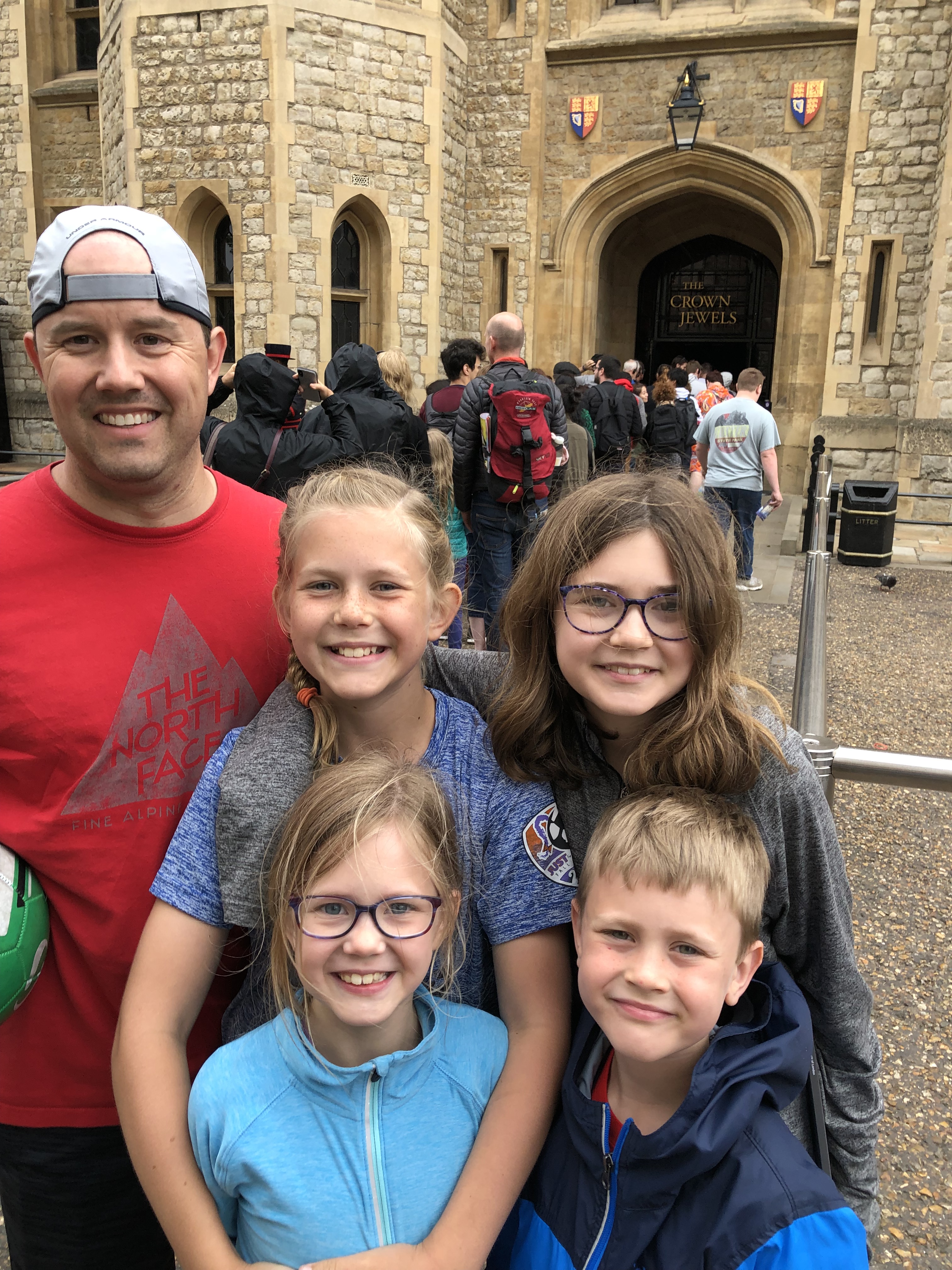 As some attention spans waned, we joined the very long queue to see the crown jewels, and when I say long, I mean about a 1/2 mile long line! We each took our turn holding our place – first Liz when I took the kids to the WC and to see the ravens, then it was my turn when Liz went to get the kids some ice cream, and then it was still my turn while Liz tracked down a coffee (which wasn’t even good). After waiting for our turn we had the pleasure of seeing the Crown Jewels in all of their splendor! The 530 carat Great Star of Africa diamond located in the head of the scepter, was my personal favorite, while the kids really enjoyed checking out the various crowns.