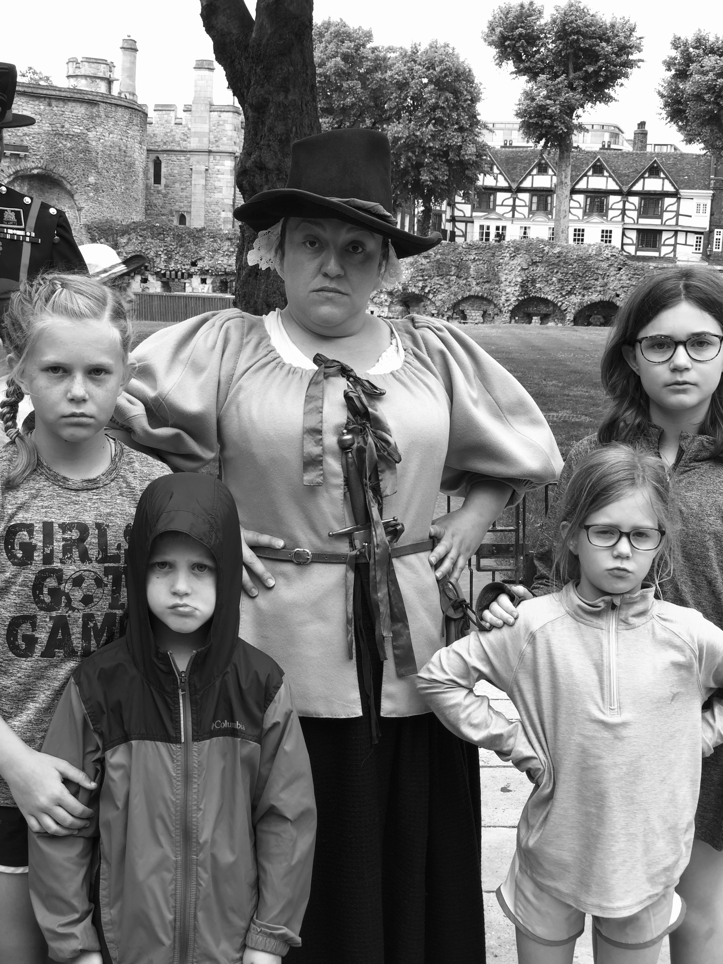 Refreshed, we headed toward the Thames to check out Tower Bridge. After snapping a few pics, we continued our walk, crossed the bridge, and found ourselves at the Tower of London. We picked up our tickets and quickly inserted ourselves into the Yeoman’s guided tour. These guys are hilarious, and in addition to the history lesson, we had a lot of laughs! The best tidbit was delivered in a spot-on Trump voice where we learned that King Henry III didn’t trust his barons, so he decided to build a wall around his castle, and he further decided that the barons would pay for it. There really are no new ideas in the world!