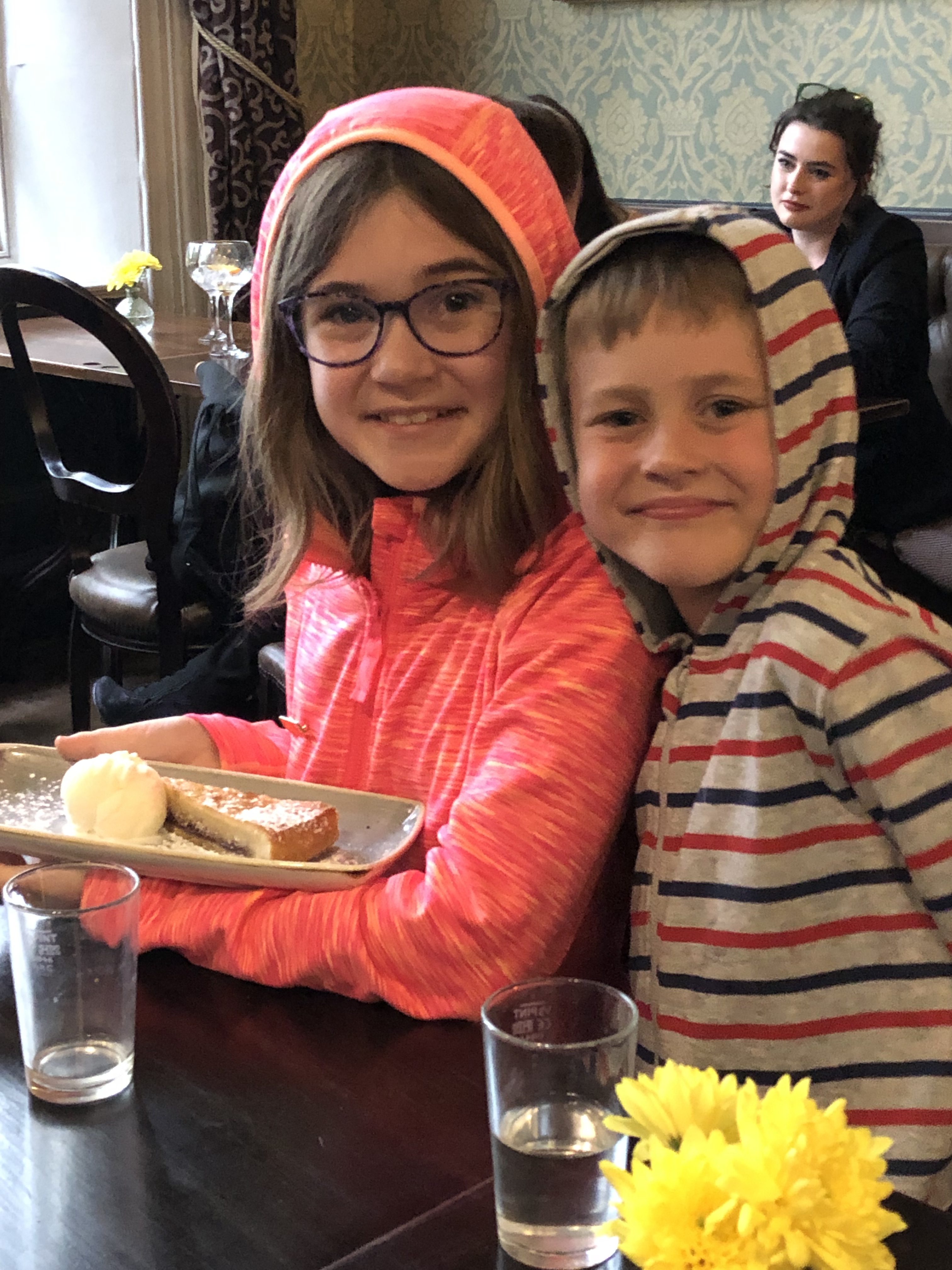 For our final meal in London we wanted to get a meal at a traditional pub. On a recommendation from my friend Kris we went to a place called the Cheshire Cheese. Literary giants like Charles Dickens, Mark Twain, and Sir Arthur Conan Doyle often frequented the place, and we were about to join there ranks. Only not this time. There was a big sporting event going on, so no kids were allowed inside. Liz and I had a great meal while the kids waited outside.