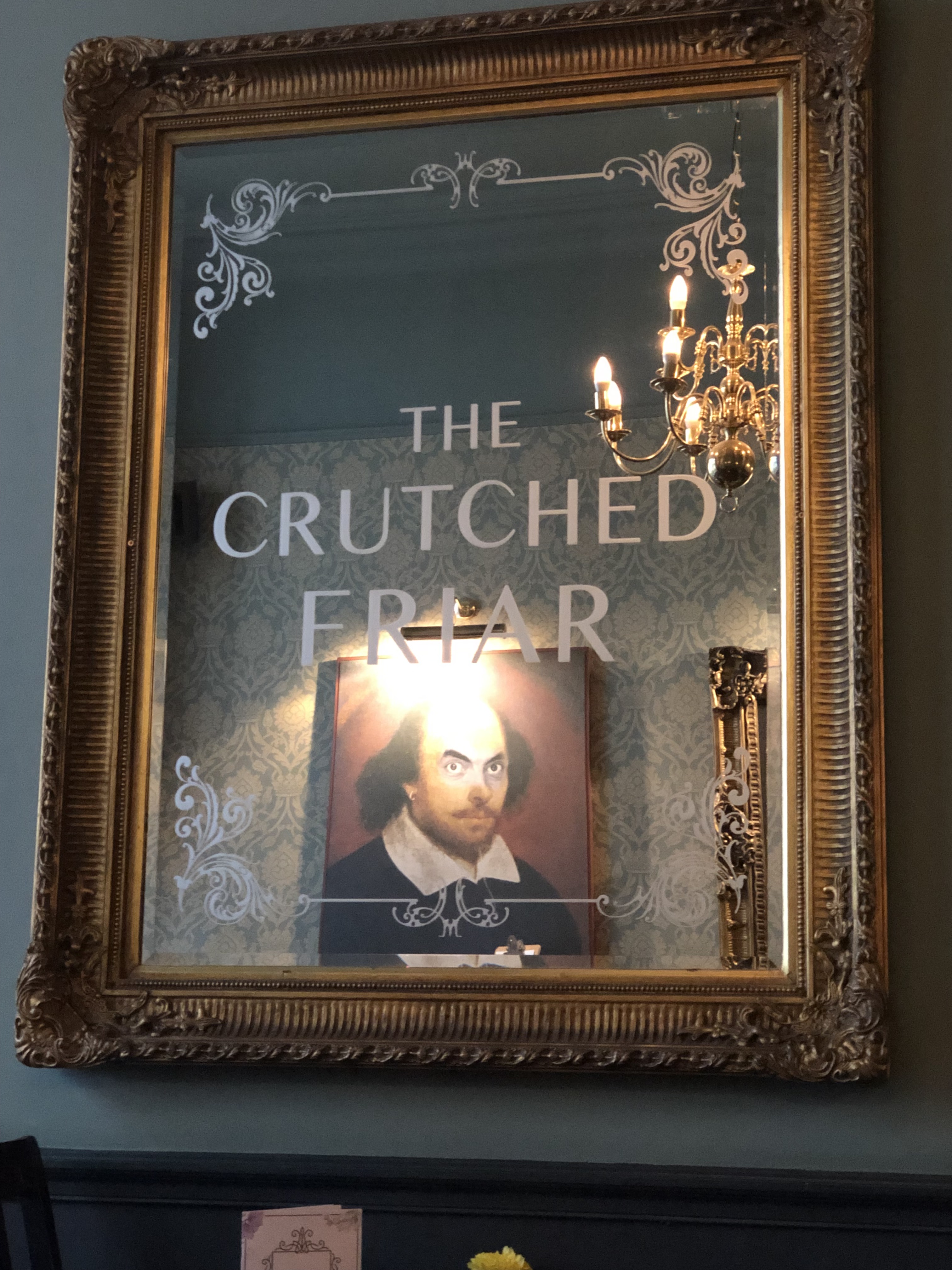 In reality, we went next door to a pub called The Crutched Friar (who comes up with these names) and enjoyed an awesome meal! We started with a sampler platter of sausage rolls, scotch eggs, shredded duck, and fried halloumi. For dessert we enjoyed our first Bakewell Tart (the first of many) and a carrot cake roll. I also enjoyed a pint, because you know, when in Rome…