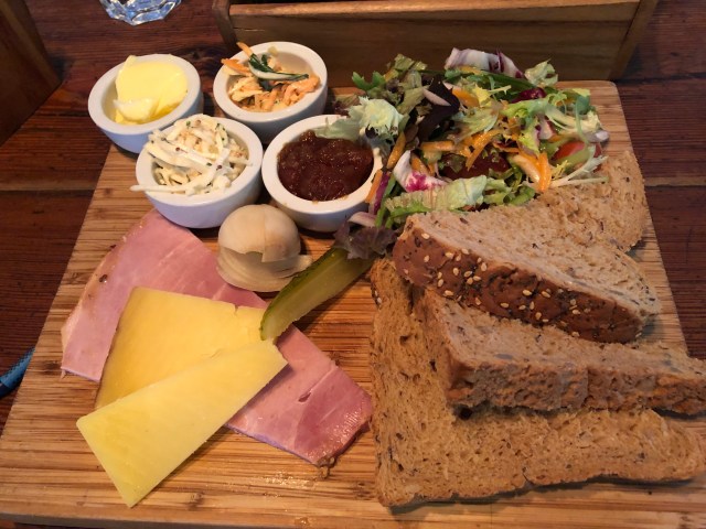 Once we finished our walk we headed to the ice cream shop for the treat that I promised everyone. With everyone marginally satisfied we retrieved our van and went to the local pub in Cheddar, The Bath Arms. This time we enjoyed a charcuterie board where we sampled the cave cheese, the honey ham, and some delicious piccalilli. After dinner we drove back to The Old Post.
