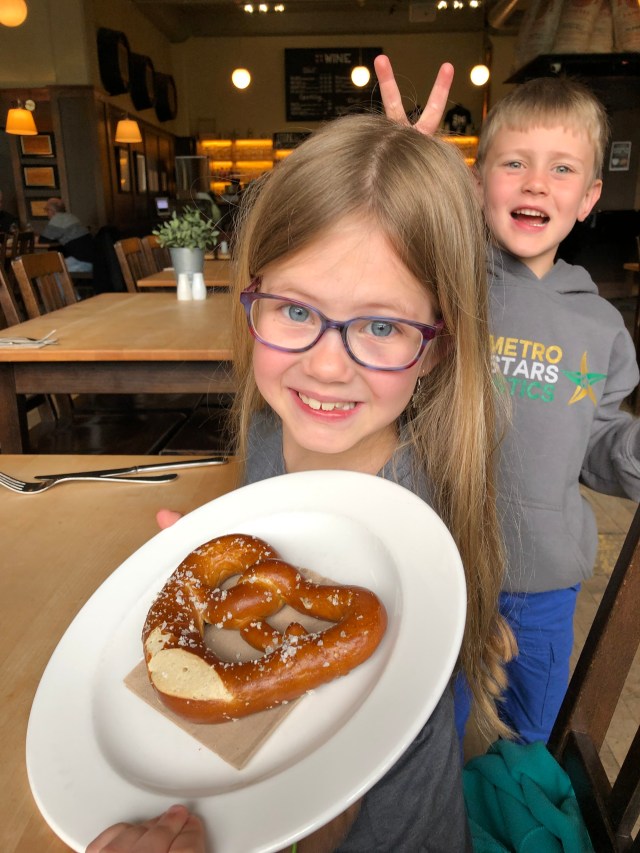 Of course it was time to eat, because isn’t it always?! We checked the map for something within walking distance and we found German Beer Garden, a throw back to last year’s trip. In spite of some quiet protests, via bad body language, we enjoyed sausages, schnitzel, beer and pretzels. After lunch we made the short trek to the People’s Palace in Glasgow Greens.