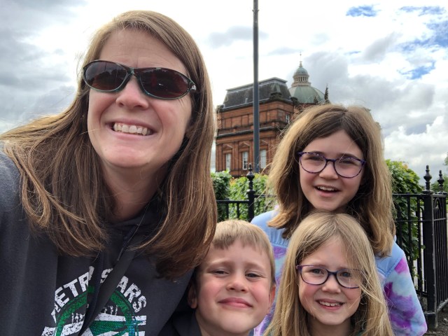 The People’s Palace is a museum with a hodge podge of exhibits about Scotland and the history of Glasgow. We picked up yet another Children’s Treasure Trail, and then proceeded to help Charlie and Samantha to hurriedly run around the place to find the answers to the questions. In this venue, there was supposed to be a little fake bird at each of the places that contained an answer to a question. That’s awesome, except when half the birds are missing. What could have been a pretty nice stroll through the museum turned into some frustrated kids whose parents’ patience was running thin.