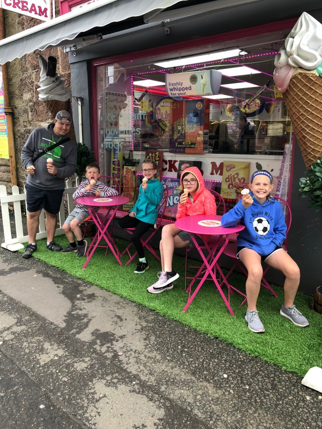 Instead we drove to a charming little village called Calendar where we engaged in one of our favorite pastimes – eating ice cream! The friendly lady in the shop let everyone try lots of unusual-to-us flavors, including Irn Bru, which apparently outsells Coca Cola in Scotland. For the record, it tastes like teaberry gum, but no one knew what I was talking about. This particular sweet shop was attended to by a diabetic, which we all agreed was very smart on the part of the owner.