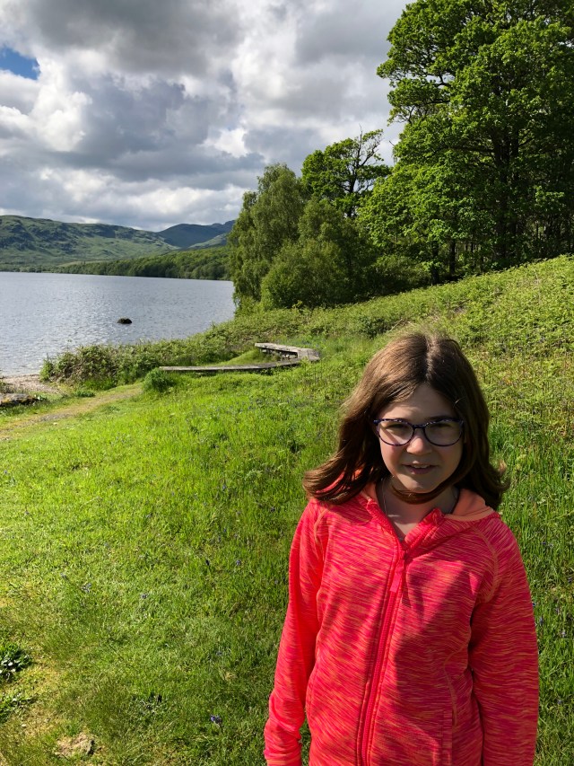 After getting our sweet tooth nourished we weren’t sure what to do. Since we had come to Loch Lomond and hadn’t seen an actual Loch yet, we decided to drive around and find one. Our exploring paid off as our travels brought us to Loch Katrine. As we exited the van we noticed a place where we could maybe rent bikes! We did this last year and it was a little scary because we cycled through the city of Potsdam in Germany. Sam was unsteady on a bike that was too big for her, Charlie had to ride in a towed basket thing, and there were numerous close calls with traffic. This situation was going to be much better since there were no cars, the bikes actually fit the kids, and it was a relatively flat ride along the banks of the Loch.