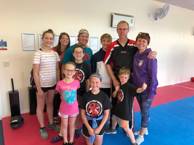After our meal we headed to the studio for Katy’s class. Erik and I have heard so much about Craig’s studio over the last year so it was really fun to see in person. Toward the end of Katy’s class Craig invited our kids out onto the floor for their own private class. Within seconds the kids were punching, kicking, and having the time of their lives! “Telephone, microphone” (how to hold your hands) is now a regular saying in our house! Thank you to Craig, Morag, Katy and Cameron for making this an experience they will never forget!