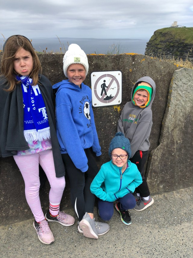 As we explored the cliffs there was an opportunity to walk along a nice stone wall or directly along the edge, or as my friend Stephen from Dublin calls it, “the Fun Side and the Safe Side.” Since Liz loves me and know that I enjoy an authentic experience, she encouraged me to walk along the Fun Side while she and kids explored from the Safe Side. For the record, at no point did I do anything sketchy that would have ended in a loss of my life.