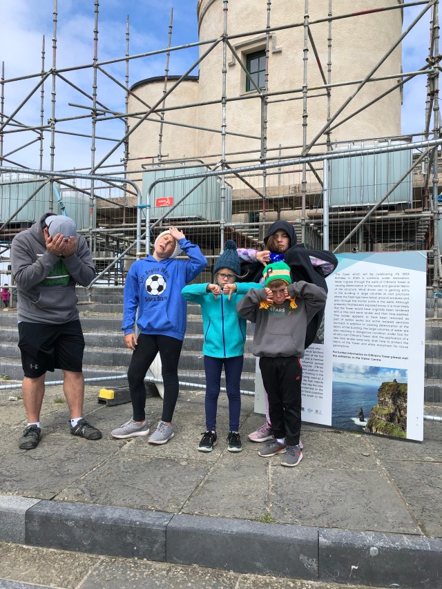 We entered the visitor center and learned about the geology of the site, the animals that call it home, and O’Brien’s Tower. Katie found a short CGI movie about the wildlife and decided to watch it three or four times. After we had exhausted the indoor areas, we ventured out to the cliffs, and they were spectacular! Breathtaking views and people doing stupid things near the edges made for a wildly entertaining time. At the end of the day I was glad the kids didn’t witness someone falling to their death.