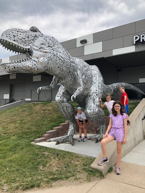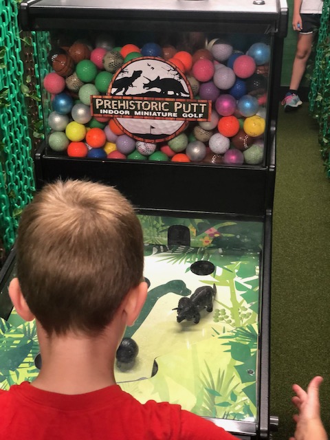 After filling up on lunch and candy we were ready for a dinosaur adventure at Prehistoric Putt-Putt. We made our way to the course and were met by this giant dinosaur!