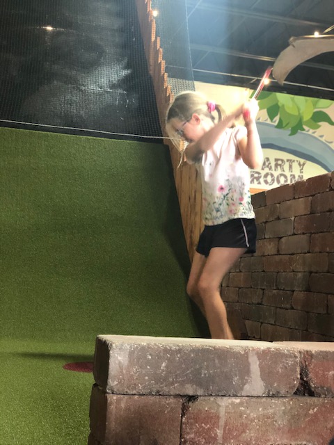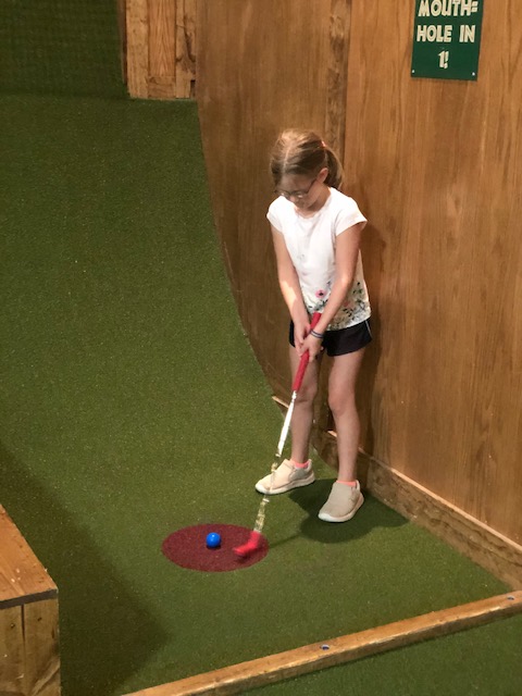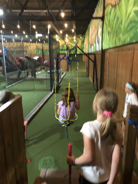 We had a blast! Each hole had it’s own challenge and thankfully everyone was game to try the unique challenges! We even had a couple of holes in 1. Some of our favorites were the zipline, the pinball tee, the loop the loop, and trying to win a free game (spoiler alert we didn’t get one!).
