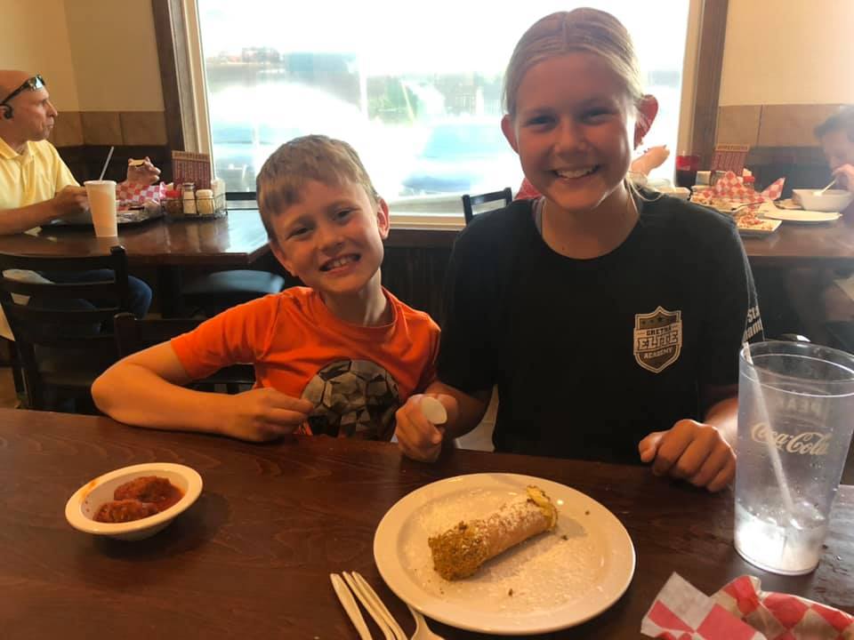 After some adventurous meals on our trip the kids requested something more familiar. We feasted on garlic cheese bread, baked ravioli with Sugo sauce, and the blanco pizza. Everything was so good! We chose to pack up some leftovers so we could have dessert! We sampled the lemon cannoli and tiramisu. Delicious!